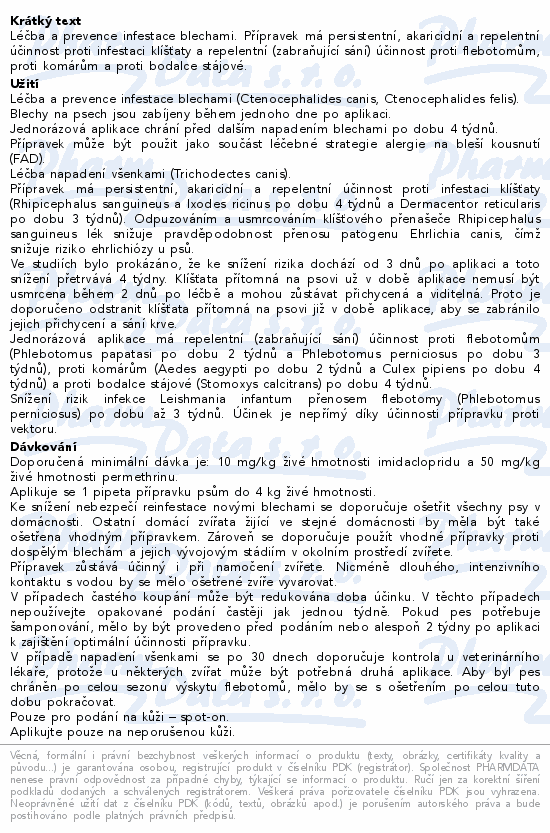 Léčba a prevence infestace blechami .Přípravek má persistentní, akaricidní a...