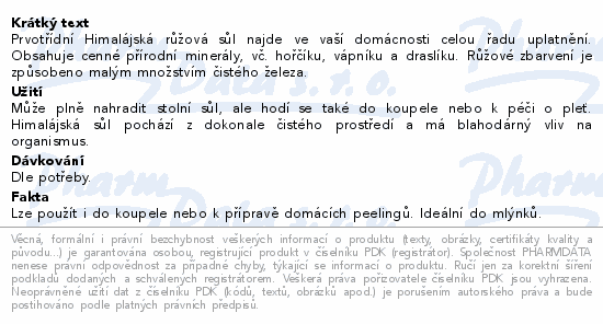 Prvotřídní Himalájská růžová sůl najde ve vaší domácnosti celou řadu uplatnění. Obsahuje cenné přírodní minerály, vč. hořčíku, vápníku a draslíku. Růžové zbarvení je způsobeno malým množstvím čistého železa.