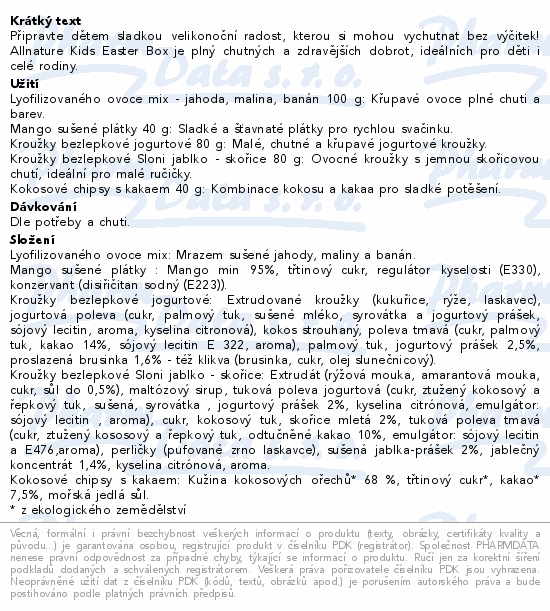 Připravte dětem sladkou velikonoční radost, kterou si mohou vychutnat bez výčitek! Allnature Kids Easter Box je plný chutných a zdravějších dobrot, ideálních pro děti i celé rodiny.