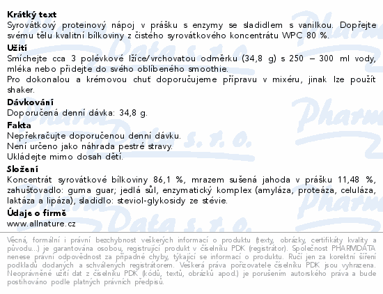 Syrovátkový proteinový nápoj v prášku s enzymy se sladidlem s vanilkou. Dopřejte svému tělu kvalitní bílkoviny z čistého syrovátkového koncentrátu WPC 80 %.