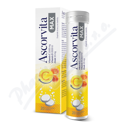 Ascorvita Max je doplněk stravy obsahující vitamin C 1000 mg, vitamin D3 2000 IU a...