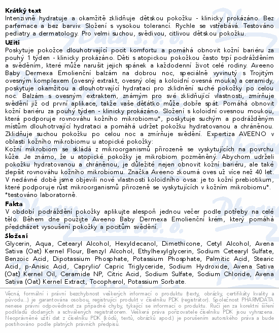 Intenzivně hydratuje a okamžitě zklidňuje dětskou pokožku - klinicky prokázáno. Bez parfemace a bez barviv. Složení s vysokou tolerancí. Rychle se vstřebává. Testováno pediatry a dermatology. Pro velmi suchou, svědivou, citlivou dětskou pokožku.