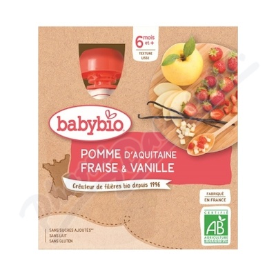 BABYBIO jablko-jahody-vanilka 6m+ 4x90g