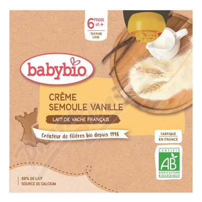 Mléčný bio příkrm od 6 měsíců ve čtyřech praktických 85g kapsičkách. Receptura založena na plnotučném kravském bio mléku z francouzských ekofarem.