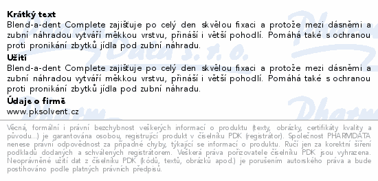 Blend-a-dent Complete zajišťuje po celý den skvělou fixaci a protože mezi dásněmi a zubní náhradou vytváří měkkou vrstvu, přináší i větší pohodlí. Pomáhá také s ochranou proti pronikání zbytků jídla pod zubní náhradu.