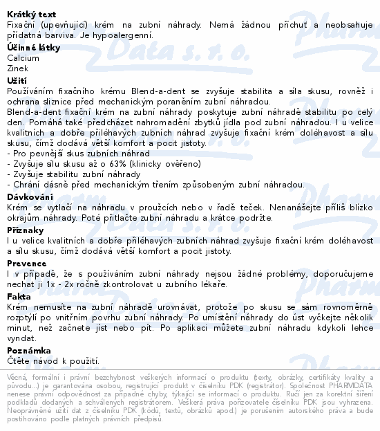 Fixační (upevňující) krém na zubní náhrady. Nemá žádnou příchuť a neobsahuje přídatná barviva. Je hypoalergenní.