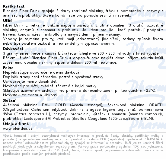 Blendea Fiber Drink spojuje 3 druhy rostlinné vlákniny, šťávu z pomeranče a enzymy z ananasu s probiotiky. Skvělá kombinace pro pohodu zevnitř i navenek.
