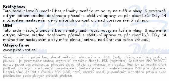 Tato sada nástrojů umožní bez námahy zastřihovat vousy na tváři a vlasy. S extrémně ostrým břitem snadno dosáhnete přesné a efektivní úpravy za pár okamžiků. Díky 14 možnostem nastavením délky máte plnou kontrolu nad úpravou svého vzhledu.