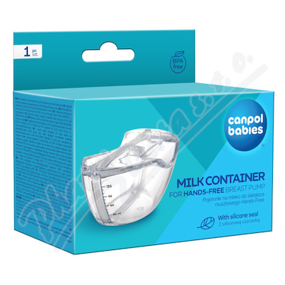Zásobník na mateřské mléko se silikonovým těsněním k odsávačce Hands-Free. Zásobník na mléko je rozebíratelný, snadno se čistí, dezinfikuje a suší. Speciální profil v horní části nádobky usnadňuje odsátého mléka do lahve bez rozlití mléka.