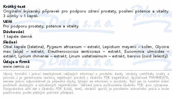 Originální švýcarský přípravek pro podporu zdraví prostaty, posílení potence a vitality. 3 účinky v 1 kapsli.