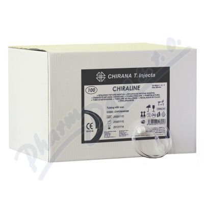 Chiraline prodlužovací hadička spojuje infúzní, nebo transfúzní soupravy s dalšími komponenty (např. i.v. kanyla CHIRAFLEX). Spojovací hadičky Chiraline jsou apyrogénní, sterilní, určené k jednorázovému použití.