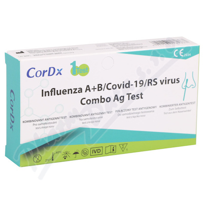k rychlé diagnostice chřipky A, chřipky B, respiračního syncyciálního viru a SARS--CoV-2. Tento test je určen pro domácí použití bez lékařského předpisu k sebetestování z nosních výtěrů.