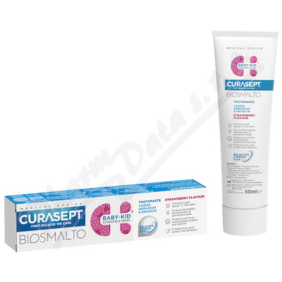 CURASEPT Biosmalto BABY Abraze&Eroze zubní pasta remineralizuje sklovinu a dentin, chrání před vznikem zubního kazu a zabraňuje vzniku zubního plaku. Pro děti od 6 měsíců-6 let. Jahodová příchuť. Neobsahuje SLS. Obsahuje 1000ppmF. Obsah 50ml.