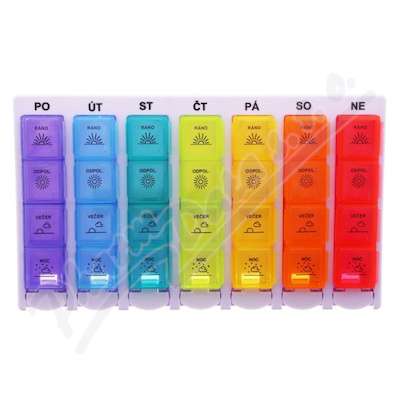 Dávkovač léků je rozdělen na 7 částí nebo pomocí zkratek názvů dnů v týdnu....
