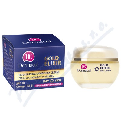 GOLD ELIXIR Omlazující kaviárový denní krém představuje hypoalergenní denní péči pro velmi zralou pleť s výtažkem z kaviáru, vyrovnává hluboké vrásky, zpevňuje pleť a zvyšuje její elasticitu. Ochranný faktor SPF10 chrání pleť před slunečním zářením.