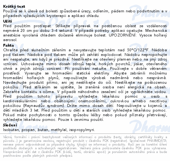 Používá se k úlevě od bolesti způsobené úrazy, odřením, pádem nebo podvrtnutím a v případech vyžadujících kryoterapii a aplikaci chladu.