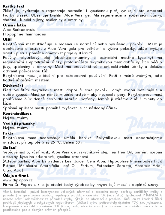 Dr.Popov Rakytníková mast Rakytela 50ml