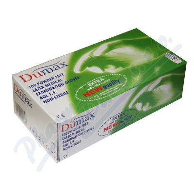Dumax jsou vyšetřovací, latexové, nesterilní a nepudrované rukavice velikosti M, dodávány v balení po 100ks.