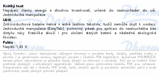 Napájecí články energií s dlouhou trvanlivostí, určené do naslouchadel do uší. Jednoduchá manipulace.