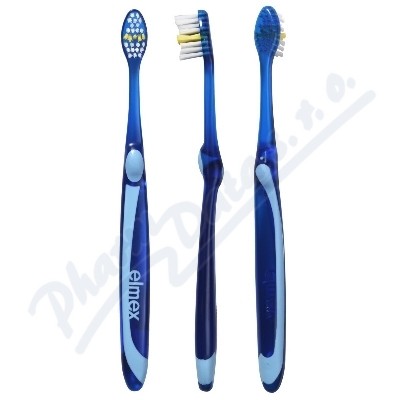Zubní kartáček elmex Junior je určen pro péči o nový stálý chrup pro děti ve věku 6-12let. Kartáček obsahuje jemná vlákna do tvaru X umožňující přístup i do těžce přístupných míst.