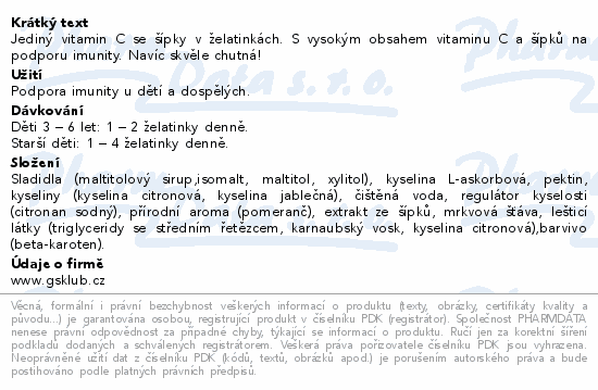 GS Céčko se šípky želatinky bez cukru 50ks dárek