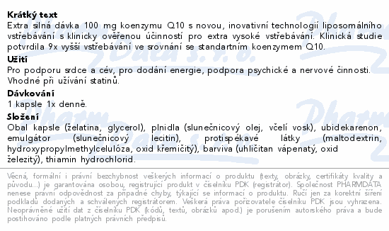 Extra silná dávka 100 mg koenzymu Q10 s novou, inovativní technologií...