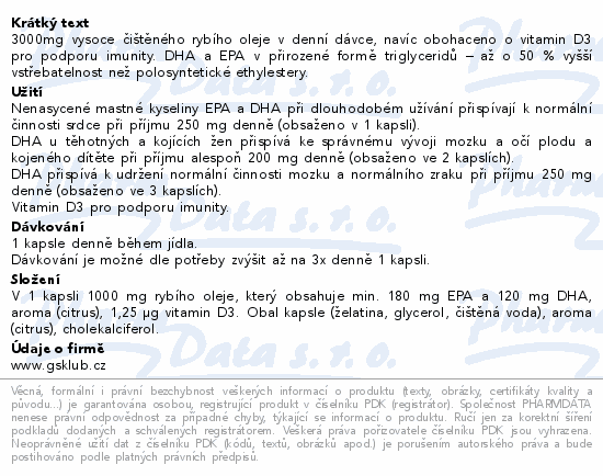 3000 mg vysoce čištěného rybího oleje v denní dávce, navíc obohaceno o vitamin...