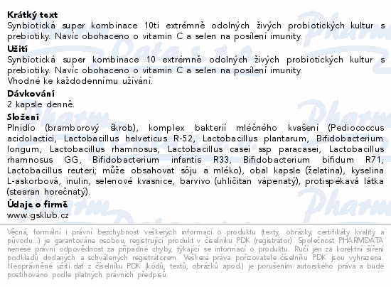 Synbiotická super kombinace 10 extrémně odolných živých probiotických kultur s...