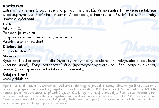 Přípravek obsahuje vitamin C ve speciální tabletě Time-Release, která zajišťuje...