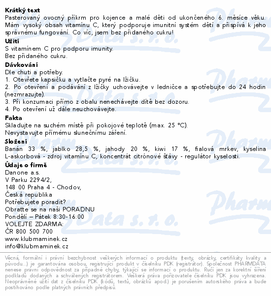 Pasterovaný ovocný příkrm pro kojence a malé děti od ukončeného 6. měsíce věku. Mám vysoký obsah vitamínu C, který podporuje imunitní systém dětí a přispívá k jeho správnému fungování. Co víc, jsem bez přidaného cukru!