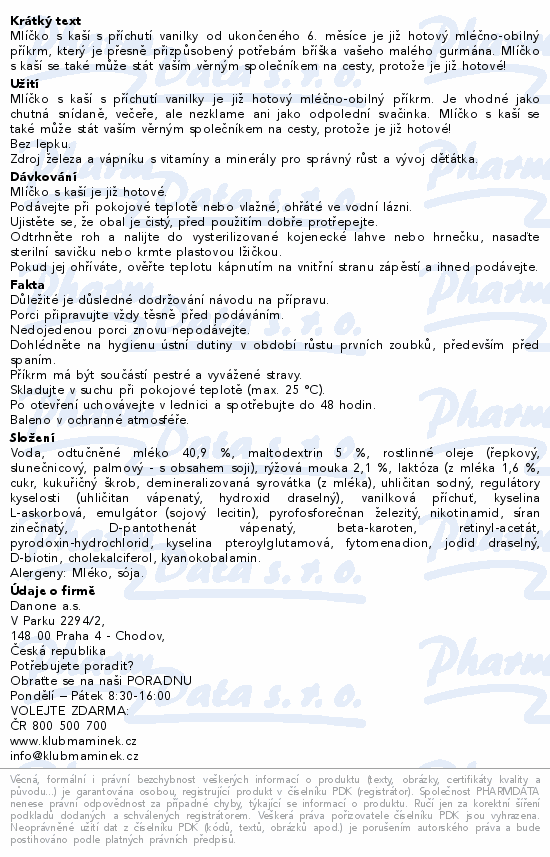 Mlíčko s kaší s příchutí vanilky od ukončeného 6. měsíce je již hotový mléčno-obilný příkrm, který je přesně přizpůsobený potřebám bříška vašeho malého gurmána. Mlíčko s kaší se také může stát vaším věrným společníkem na cesty, protože je již hotové!