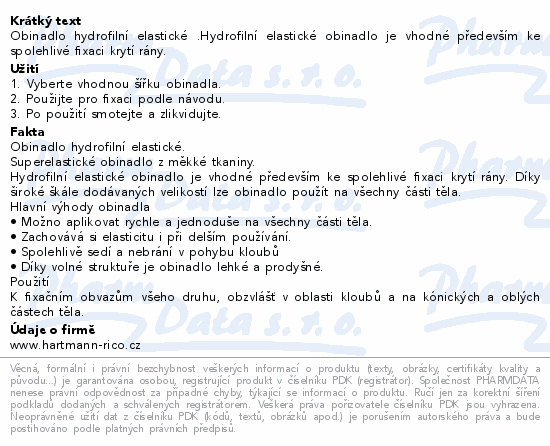 Obinadlo hydrofilní elastické .Hydrofilní elastické obinadlo je vhodné především ke spolehlivé fixaci krytí rány.