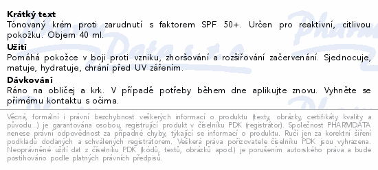 Tónovaný krém proti zarudnutí s faktorem SPF 50+. Určen pro reaktivní, citlivou pokožku. Objem 40 ml.