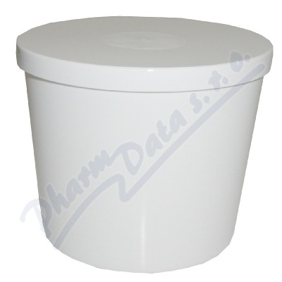 Plastový bílý kelímek s víčkem. Pomocný materiál určený pro lékárny - na masti, soli, pudry, prášky apod.