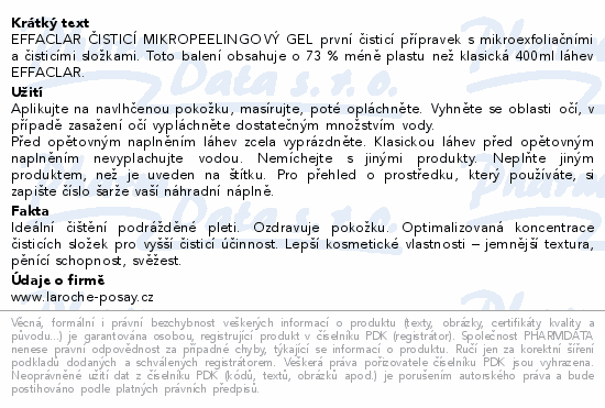 EFFACLAR ČISTICÍ MIKROPEELINGOVÝ GEL první čisticí přípravek s mikroexfoliačními a čisticími složkami. Toto balení obsahuje o 73 % méně plastu než klasická 400ml láhev EFFACLAR.