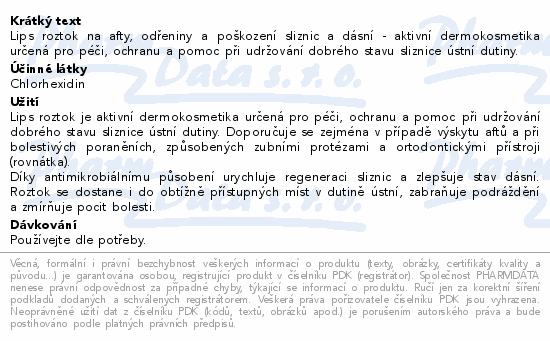 Lips roztok na afty, odřeniny a poškození sliznic a dásní - aktivní dermokosmetika určená pro péči, ochranu a pomoc při udržování dobrého stavu sliznice ústní dutiny.