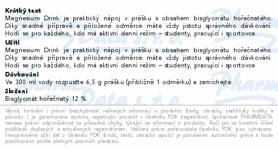 Magnesium Drink je praktický nápoj v prášku s obsahem bisglycinátu hořečnatého. Díky snadné přípravě a přiložené odměrce máte vždy jistotu správného dávkování. Hodí se pro každého, kdo má aktivní denní režim – studenty, pracující i sportovce.