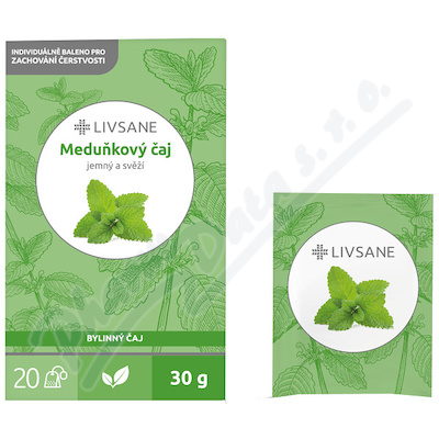 Čaj z listu meduňky lékařské. Balený individuálně v ochranném sáčku. 1 balení obsahuje 20 sáčků. 1 sáček = 1, 5 g.