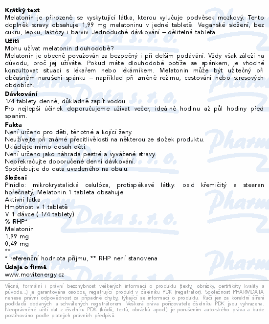 MOVit Melatonin comfort sleep 1.99 mg tbl.180
