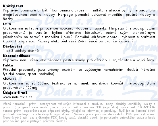 Přípravek obsahuje unikátní kombinaci glukosamin sulfátu a africké byliny Harpago pro dvojnásobnou péči o klouby. Harpago pomáhá udržovat mobilitu, pružné klouby a šlachy.