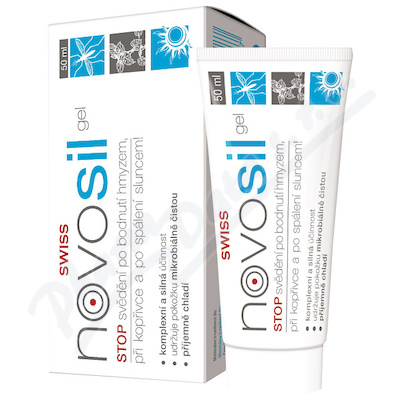 Novosil gel SWISS je přípravek, který zmírňuje svědění, zklidňuje začervenalé místo po bodnutí hmyzem, při kopřivce či po spálení sluncem a udržuje jej mikrobiálně čisté.