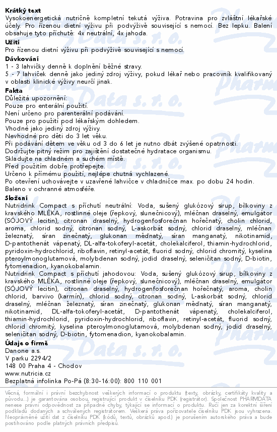 Nutridrink Compact je vysokoenergetická nutričně kompletní tekutá výživa....