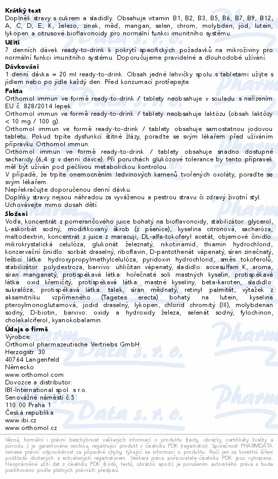 Doplněk stravy s cukrem a sladidly. Obsahuje vitamin B1, B2, B3, B5, B6, B7, B9, B12, A, C, D, E, K, železo, zinek, měď, mangan, selen, chrom, molybden, jód, lutein, lykopen a citrusové bioflavonoidy pro normální funkci imunitního systému.