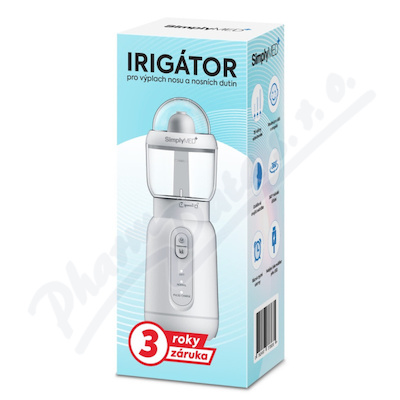 SimplyMed Irigátor pro výplach nosu a nosních dutin NS1A3 se skládá z hlavní jednotky a proplachovací hlavice, vnitřní lithiové baterie a USB kabelu. Proplachovací hlavice se skládá ze stříkací trysky, adaptéru, krytu, sací trubice, nádržky na vodu atd.