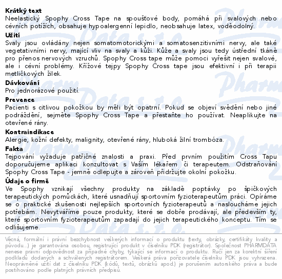 Neelastický Spophy Cross Tape na spoušťové body, pomáhá při svalových nebo cévních potížích, obsahuje hypoalergenní lepidlo, neobsahuje latex, voděodolný.