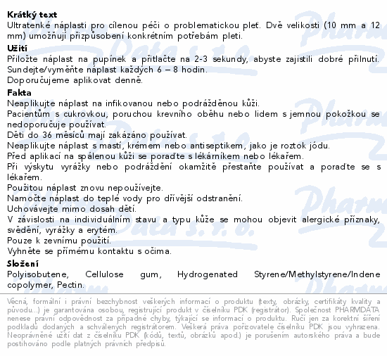 Ultratenké náplasti pro cílenou péči o problematickou pleť. Dvě velikosti (10 mm a 12 mm) umožňují přizpůsobení konkrétním potřebám pleti.