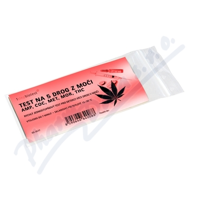 Rychlý jednostupňový kontrolní test pro zjištění AMP, COC, MET, MOR, THC v moči. Rozliší koncentraci 20-2000 ng