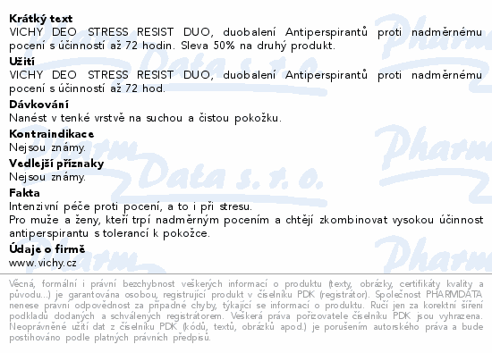 VICHY DEO STRESS RESIST DUO, duobalení Antiperspirantů proti nadměrnému pocení s účinností až 72 hodin. Sleva 50% na druhý produkt.