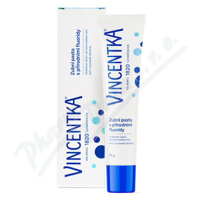 Vincentka zubní pasta s obsahem přírodních minerálů, čistí a současně ošetřuje. Příznivě působí na sliznici dutiny ústní, udržuje zdravý stav dásní a zabraňuje vzniku paradentózy.