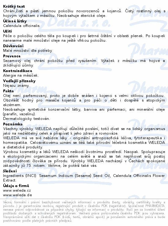 Chrání, čistí a pěstí jemnou pokožku novorozenců a kojenců. Čistý rostlinný olej s hojivým výtažkem z měsíčku. Neobsahuje éterické oleje.